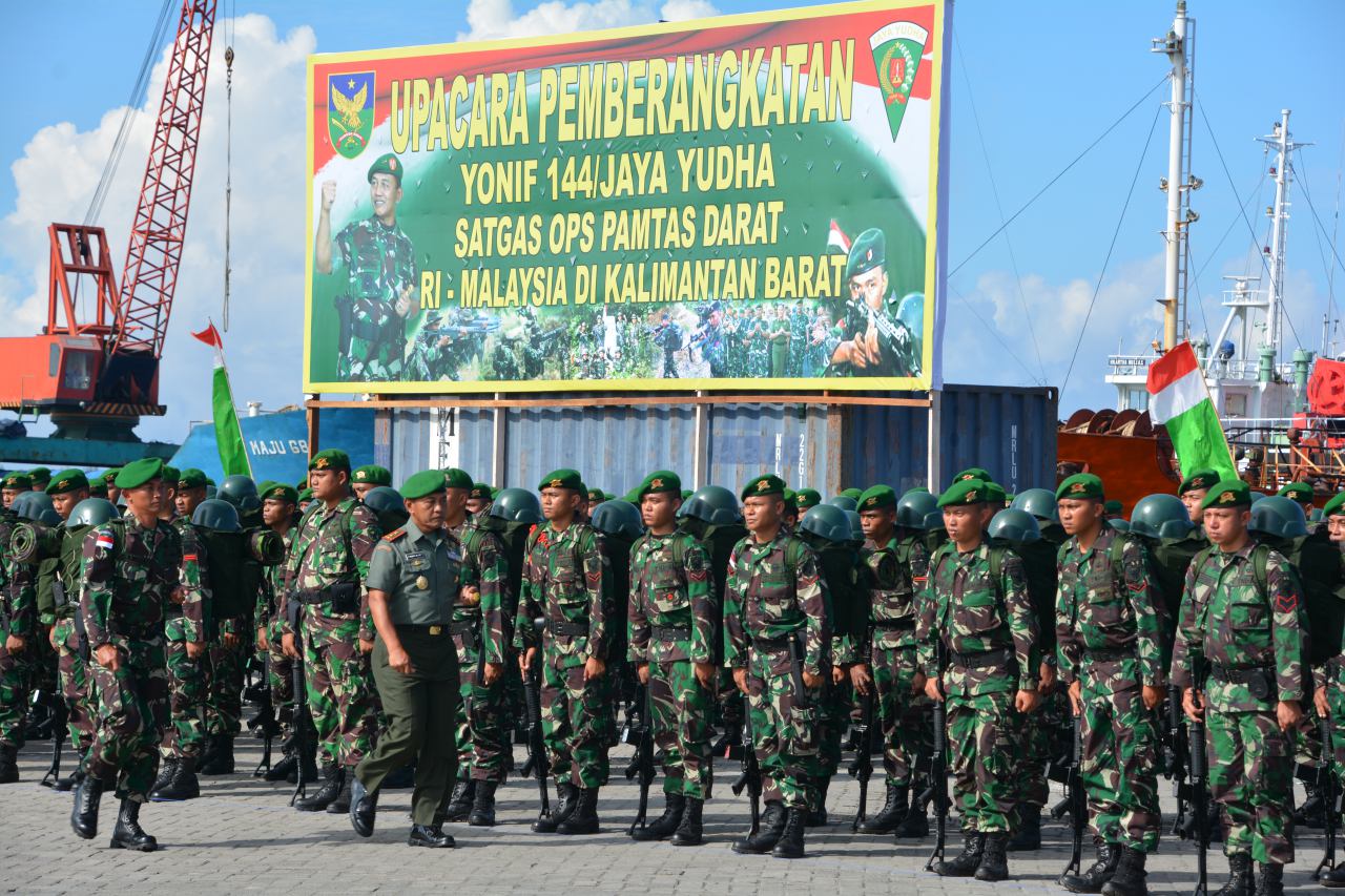 Untuk kesekian kalinya Kodam II/Swj mendapatkan kepercayaan dari pimpinan TNI dalam melaksanakan tugas operasi di daerah perbatasan Kalimantan.Sebagai prajurit, tugas operasi ini harus dimaknai sebagai amanah, kepercayaan, kehormatan dan kebanggaan, karena tidak setiap prajurit mendapatkan kesempatan melaksanakan penugasan seperti ini.Oleh karena itu, laksanakan tugas ini dengan penuh totalitas, semangat pengabdian, profesionalitas, dedikasi, disiplin dan rasa tanggung jawab yang tinggi.Demikian dikatakan Pangdam II/Swj Mayjen TNI Purwadi Mukson, S.I.P., pada upacara Pemberangkatan Satgas Pamtas Yonif 144/JY ke Kalimantan Barat (Kalbar), Jum’at (22/1/2016) yang berlangsung di Pelabuhan Pulau Bay Bengkulu.Pangdam juga mengatkan bahwa Provinsi Kalimantan Barat yang akan menjadi tempat penugasan Satgas Yonif 144/JY memiliki beberapa potensi kerawanan, terutama berkenaan denganaktivitas kegiatan illegal seperti illegal logging, illegal minning, humantrafficking, pelintas batas dankriminalitas seperti penyelundupanNarkoba, yang kerap memanfaatkan celah yang ada di wilayah perbatasan.“Oleh sebab itu, keberadaan Satgas Pamtas RI – Malaysia Yonif144/JY diharapkan dapat membantu mengamankan wilayah perbatasan dan sekaligus mampu membantu mengatasi permasalahan tersebut”, ujarnya.Pangdam juga menambahkan bahwa, setibanya di daerah penugasan agar segera melakukan adaptasi dan selalu waspada. “Kenali betul adat dan budaya serta karakter masyarakat setempat, karena hal ini penting dilakukan guna mendapatkan dukungan dari masyarakat. Implementasikan Sapta Marga, Sumpah Prajurit dan 8 Wajib TNI, taati dan ikuti semua petunjuk maupun perintah atasan serta Protap-Protap yang berlaku”, tandas Mayjen Purwadi.Dihadapan segenap prajurit Satgas Yonif 144/Jaya Yudha, Pangdam II/Swj mengucapkan selamat jalan dan selamat bertugas, semoga sukses dalam melaksanakan tugas mulia ini. Do’a kami semua menyertai langkah dan pengabdian kalian. ”Harapan kita semua, semoga Satgas Ops Pamtas Yonif 144/JY yang merupakan kebanggaan kita bersama ini, berangkat dan kembali dalam keadaan lengkap dan selamat serta berhasil dengan gemilang”, ujarnya.Untuk diketahui, Satgas Pamtas RI – Malaysia Yonif 144/JY akan bergabung bersama-sama Satgas Pamtas Yonif 312 Kodam III/Siliwangi, menggantikan Satgas Yonif 644 Kodam XII/Tanjung Pura dan Yonif 132 Kodam I/Bukit Barisan yang akan purna tugas.Satgas Gabungan ini bertugas melaksanakan operasi pengamananperbatasan wilayah darat RI – Malaysia, mencegah terjadinya pergeseran patok-patok batas di wilayah perbatasan, membantu tugas dan fungsi instansi terkait bidang Kamtibmas, Keimigrasian,Bea Cukai dan penanganan awal terhadap pelanggaran tindakan ilegaldan beberapa tugas lainnya.Hadir pada acara tersebut, Kapolda, Danrem 041/Gamas, Danlanal, Bupati beserta Forum Koordinasi Pimpinan Daerah (FKPD) Bengkulu, Ketua Persit Koorcab Rem 044/Gamas beserta anggota keluarga Prajurit Yonif 144/JY.(sofuan/rel)