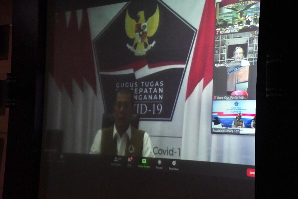 _Selain Kepala Gugus Tugas Percepatan Penanganan Covid-19 Letjen TNI Doni Manardo, tampak juga sejumlah narasumber seperti, Menko Maritim dan Investasi RI Letjen TNI (Purn) Luhut Binsar Panjaitan, Menko Polhukam RI Mahfud MD dan Wakil Kepala BIN Letjen TNI (Purn) Teddy Laksamana._