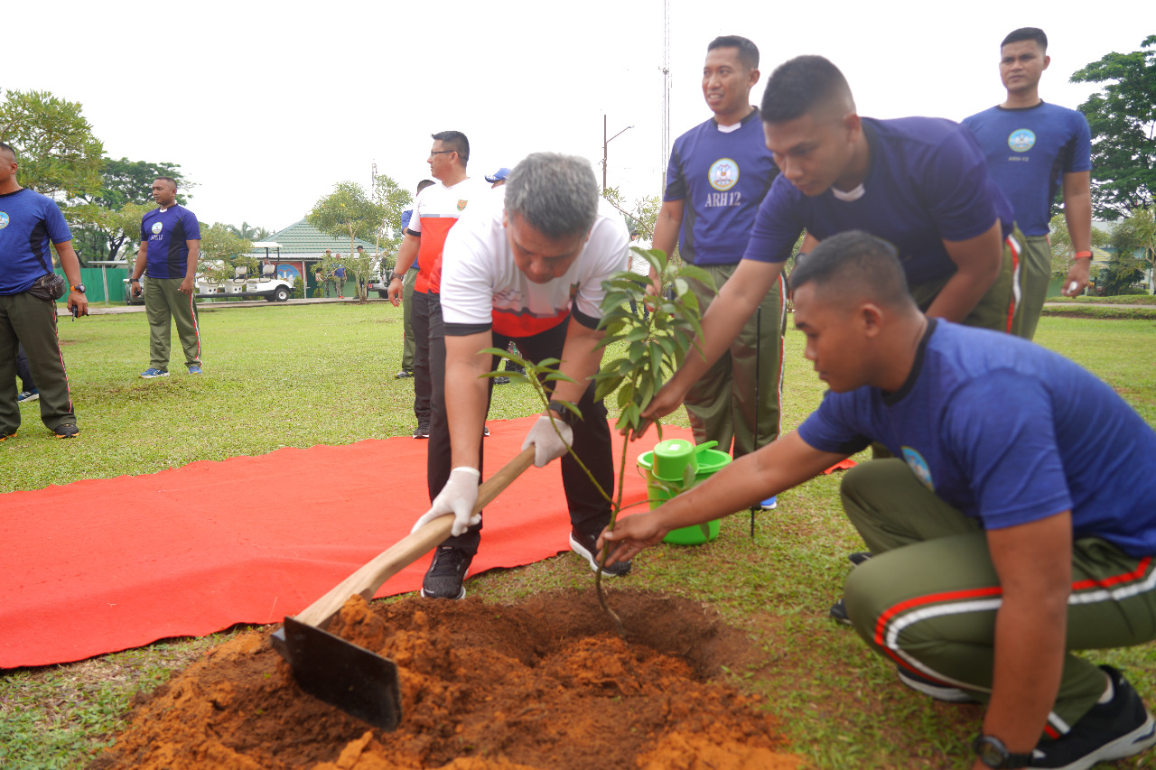 Kunjungan kerja Pangdam ll/Swj selain melihat pangkalan satuan secara langsung, juga melaksanakan penanaman pohon Alpokat Madu dan Kelengkeng secara simbolis dihalaman Yonarhanud 12/SBP.