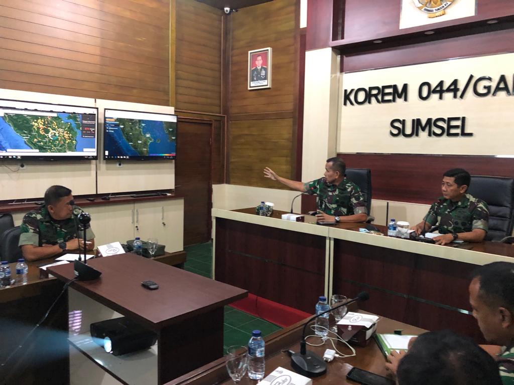 Hal itu diungkapkan dalam rapat evaluasi dalam rangka penanganan karhutla di provinsi Sumsel yang dipimpin langsung Pangdam II/Sriwijaya Mayjen TNI Irwan, S.I.P., M. Hum., Minggu (22/9/2019) bertempat di Ruang Rapat Markas Korem 044/Gapo KM. 5 Palembang.