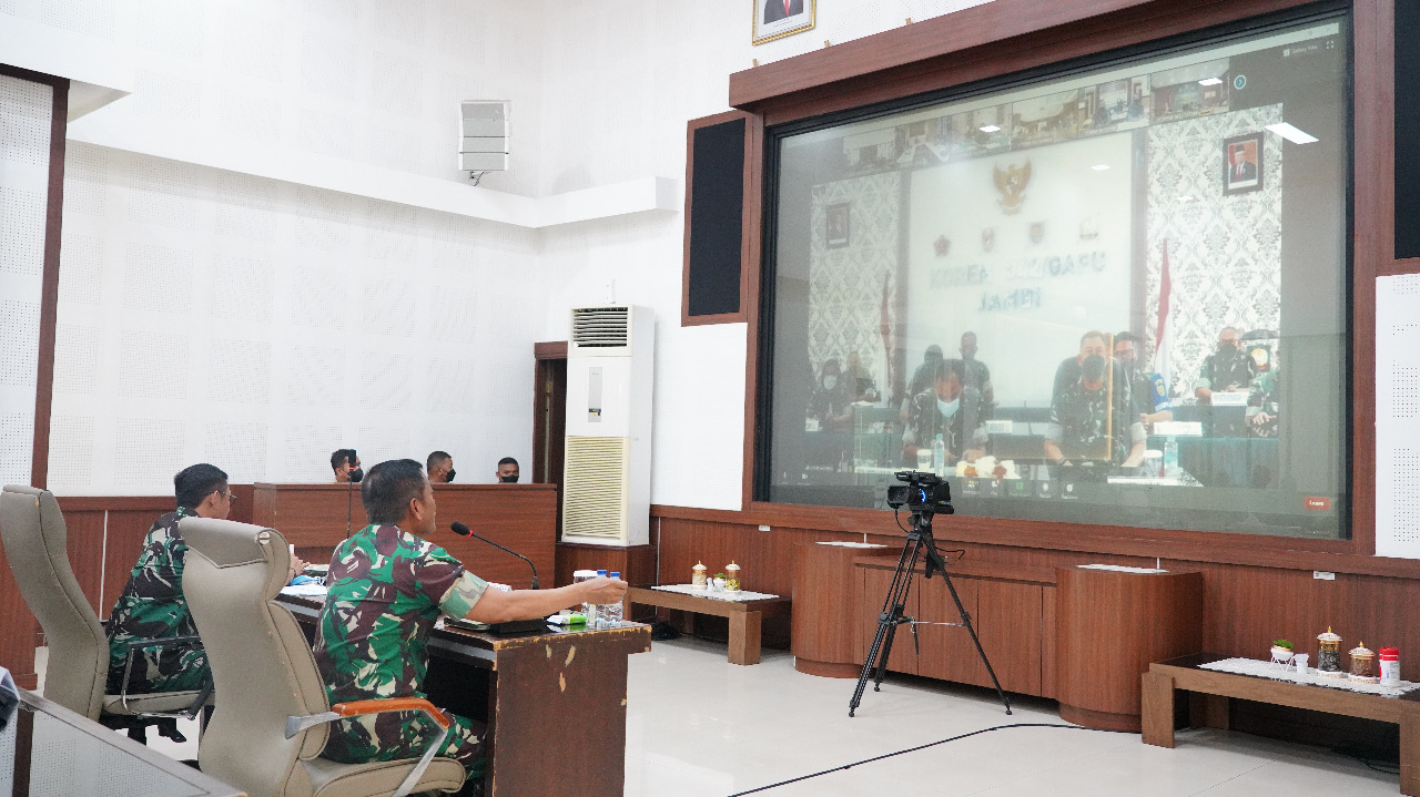 Pangdam II/Sriwijaya Mayjen TNI Agus Suhardi, memberikan arahan melalui aplikasi Video Conference (Vicon) kepada para Komandan Satuan (Dansat) dan Kabalak seluruh jajaran Kodam II/Swj.