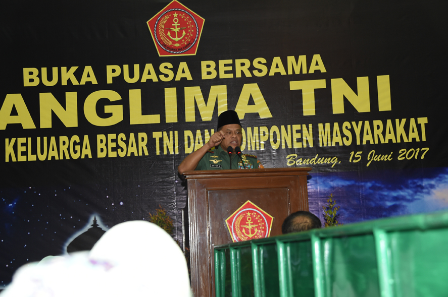 Hal tersebut dikatakan Panglima TNI Jenderal TNI Gatot Nurmantyo pada acara buka puasa bersama Prajurit TNI dan Anak Yatim Piatu, di Gedung Wiryadinata Mako Korpaskhas TNI AU Margahayu Bandung, Jawa Barat, Kamis malam (15/6/2017).