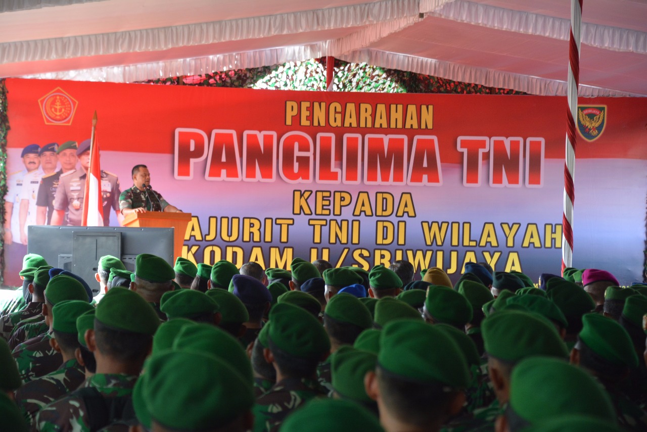 Demikian hal tersebut disampaikan Panglima TNI Jenderal TNI Gatot Nurmantyo dalam arahannya dihadapan 4.152 Prajurit TNI dari tiga matra, yakni TNI AD, TNI AL dan TNI AU yang berada  di wilayah Palembang, Selasa (17/10/2017) bertempat di Pangkalan Udara Lanud Palembang, Sumatera Selatan.