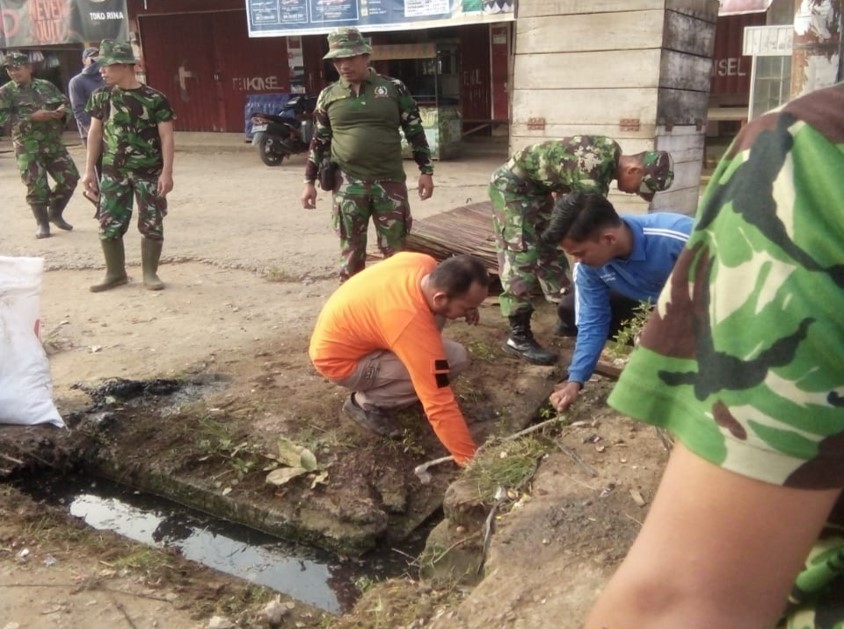 Perwira Seksi Teritorial (Pasiter) Kodim 0430/Banyuasin Lettu Inf Pringgo saat berbaur dengan masyarakat melakukan pembersihan parit mengatakan, kalau ada parit yang tersumbat dan penuh dengan sampah, mari kita bersihkan, apabila membutuhkan bantuan tidak usah sungkan laporan kepada Babinsanya karena jika ada genangan air berakibat banyak bibit nyamuk sehingga menimbulkan nyamuk demam berdarah,” terang Pringgo.