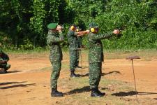 Menembak merupakan kemampuan dasar tempur yang harus selalu di latihkan sebagai seorang prajurit TNI disamping untuk membiasakan prajurit mempergunakan senjata yang dimiliki. Guna memelihara kemampuan tersebut, Danrem 041/Gamas Kolonel Inf Andi Muhammad bersama Para Dandim jajaran Korem 041/Gamas melaksanakan latihan menembak Pistol bertempat di Lapangan Kompi “B” Yonif 144/JY.