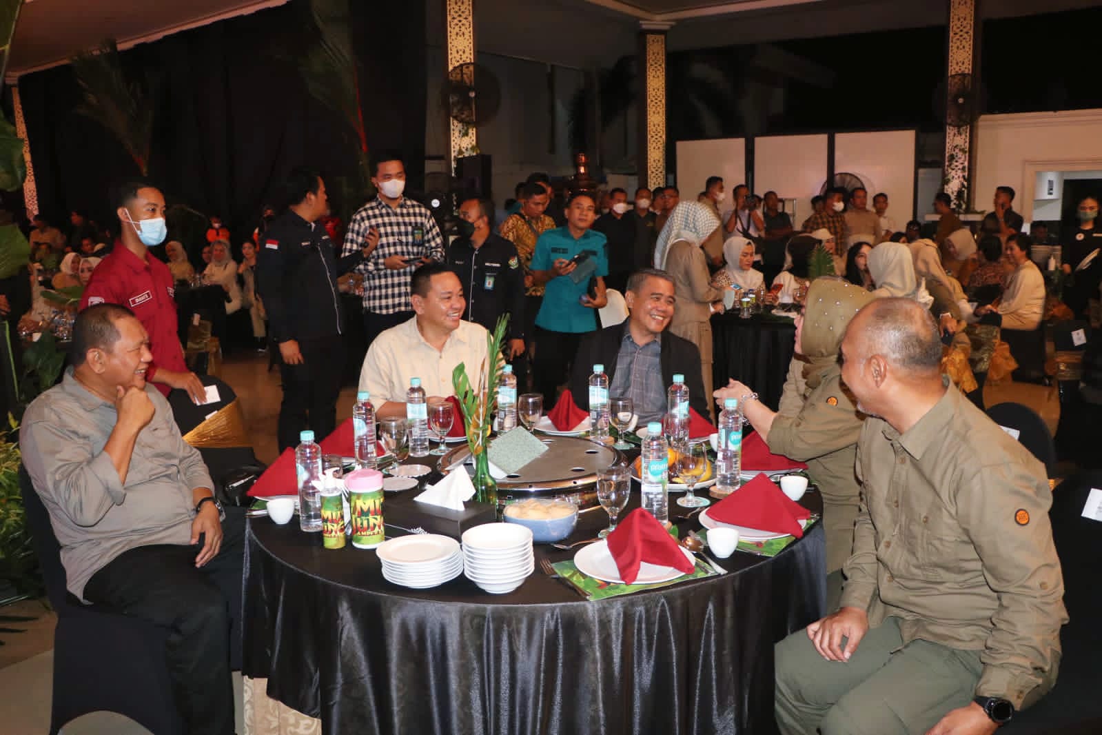 Muaraenim,Halosumsel-Penjabat (Pj) Bupati Muara Enim, Kurniawan Bersama Gubernur Sumatera Selatan, H. Herman Deru, Forkopimda Sumsel menghadiri undangan malam perkenalan dan pamitan Kepala Kepolisian Daerah (Kapolda) Sumatera Selatan (Sumsel) Irjen. Pol. Albertus Rachmad Wibowo yang sebelumnya menjabat sebagai Kapolda Jambi pada Senin malam (24/10) di Griya Agung Kota Palembang.