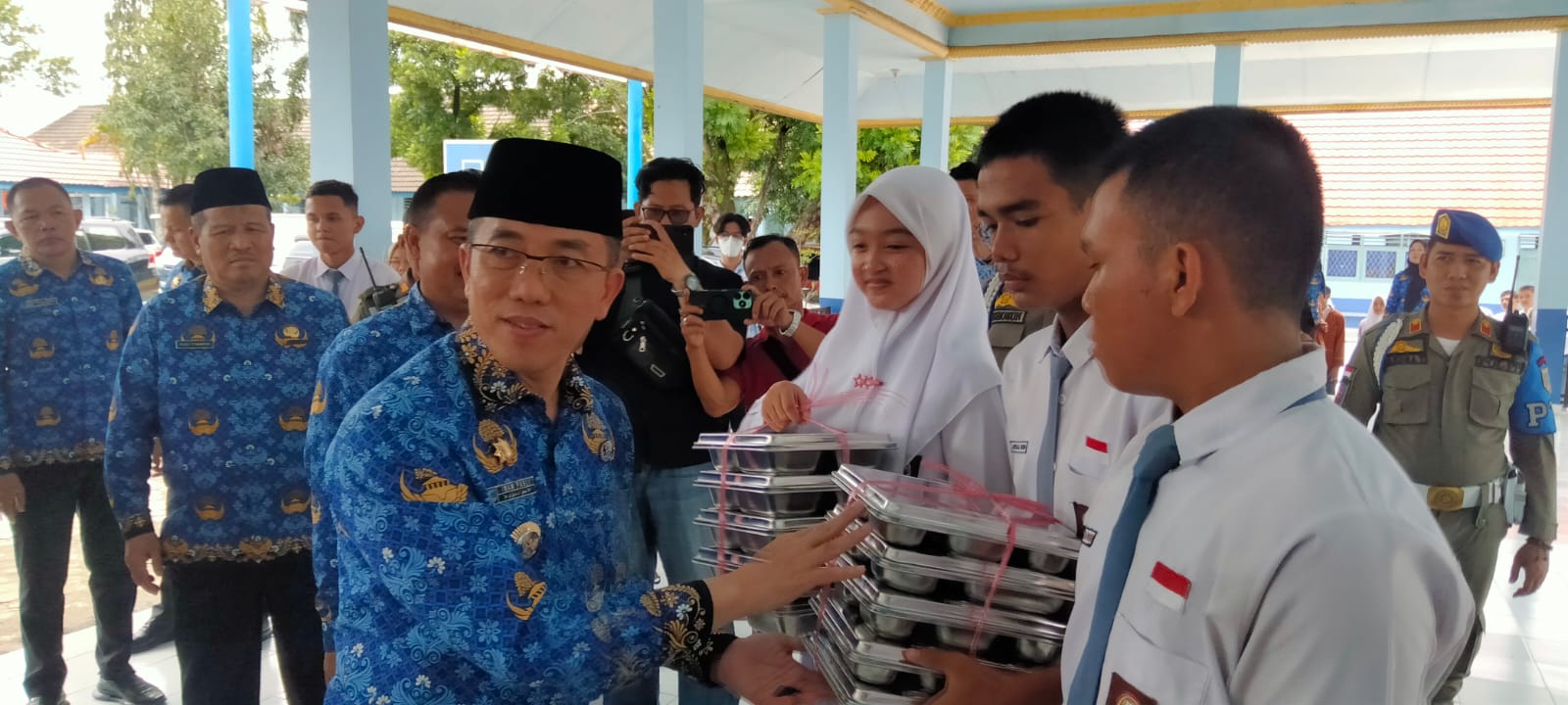 Penjabat Bupati Imam Pasli memonitor penyaluran dan berkesempatan memberikan secara langsung makan bergizi tersebut ke para murid yang ada di SD N 19 Lahat dan SMU N 2 Lahat.