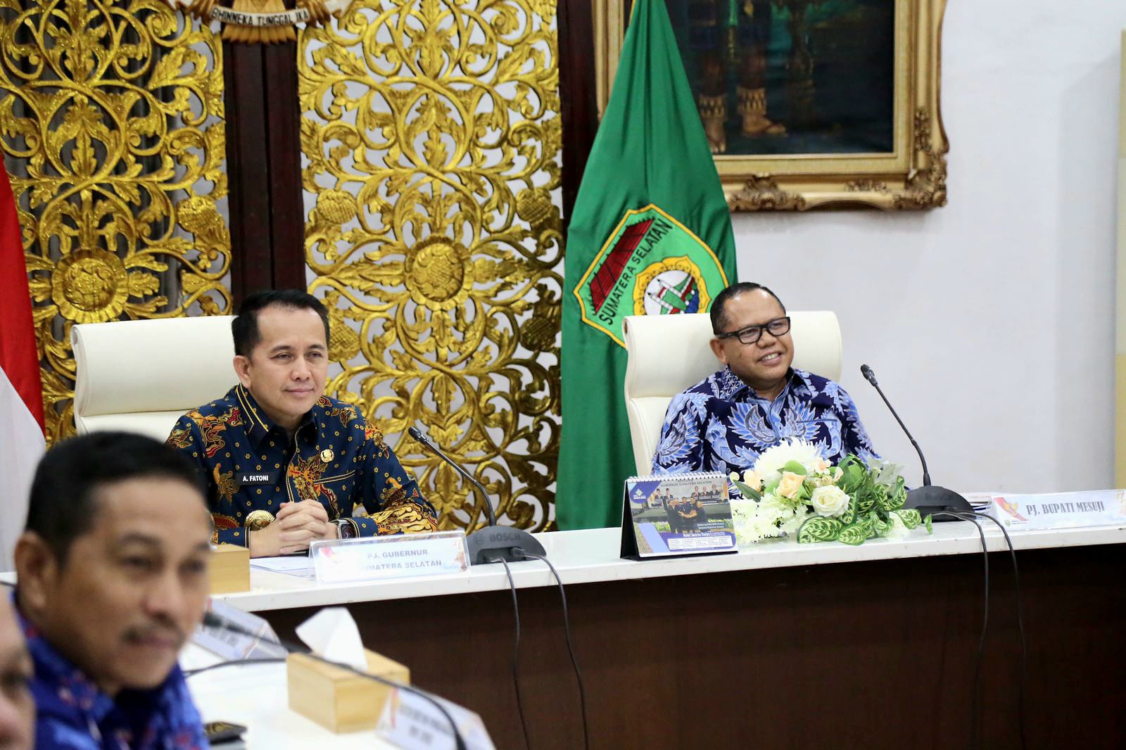 Hadir mendampingi Pj Gubernur, di antaranya Asisten I Pemerintah dan Kesra Setda Sumsel Edward Chandra, Asisten II Bidang Ekonomi, Keuangan dan Pembangunan Basyaruddin Akhmad, Asisten Bidang Ekonomi dan Pembangunan Indra Kusuma Wijaya serta para Kepala OPD Pemprov Sumsel dan Kepala OPD Kabupaten Mesuji Lampung.