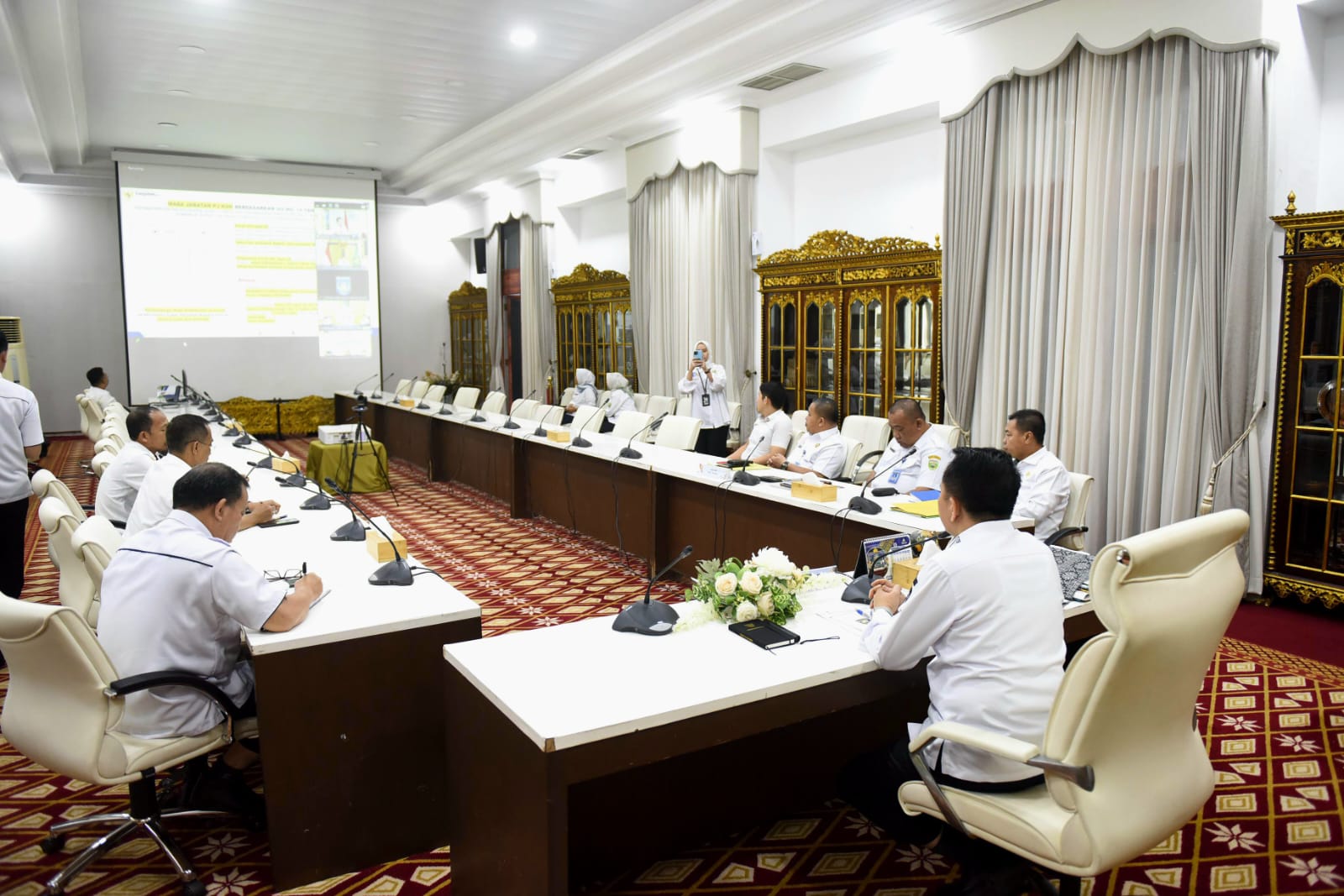 Palembang, Halosumsel- Penjabat (Pj) Gubernur Sumatera Selatan (Sumsel) Agus Fatoni menghadiri Rapat Koordinasi (Rakor) Isu-Isu Strategis Terkait Pelaksanaan Pemilihan Kepala Daerah (Pilkada) dan Tata Kelola Penyelenggaraan Pemerintah Daerah. Rapat tersebut diselenggarakan oleh Kementerian Dalam Negeri (Kemendagri) dan dipimpin Menteri Dalam Negeri (Mendagri)) Muhammad Tito Karnavian secara virtual, Rabu (27/3/2024).