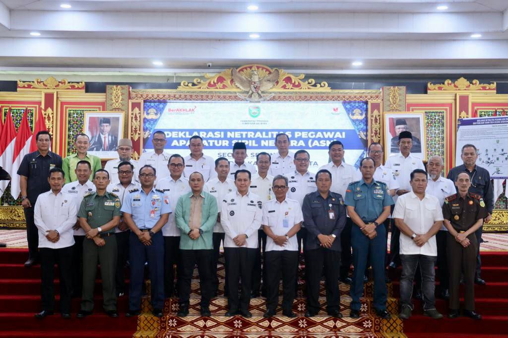 Palembang, Halosumsel- Menjelang penyelenggaraan Pemilihan Umum (Pemilu) dan Pemilihan Kepala Daerah (Pilkada) secara serentak tahun 2024 mendatang, Penjabat (Pj) Gubernur Sumatera Selatan Agus Fatoni secara langsung memimpin Deklarasi secara serentak Netralitas Aparatur Sipil Negara (ASN) Pemerintah Provinsi dan Kabupaten/Kota se-Sumsel. Kegiatan ini berlangsung di Griya Agung Palembang, Sumatera Selatan, Rabu (27/12/2023).
