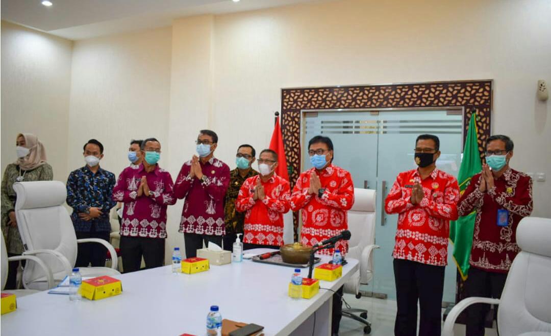 Kompak mengenakan Batik Kujur, Plh. Bupati Muara Enim, Dr. H. Nasrun Umar, S.H., M.M., bersama para Kepala Organisasi Perangkat Daerah (OPD) Kabupaten Muara Enim, menghadiri secara virtual pembukaan Rapat Kerja Daerah (Rakerda) Dewan Kerajinan Nasional Daerah (Dekranasda) Provinsi Sumatera Selatan dan Rapat Koordinasi (Rakor) Tim Penggerak PKK Provinsi Sumatera Selatan 2021 di Hotel Aryaduta Palembang dari Ruang Pusat Komando (Command Center) Kantor Gubernur Sumatera Selatan. Kamis (4/3/21)