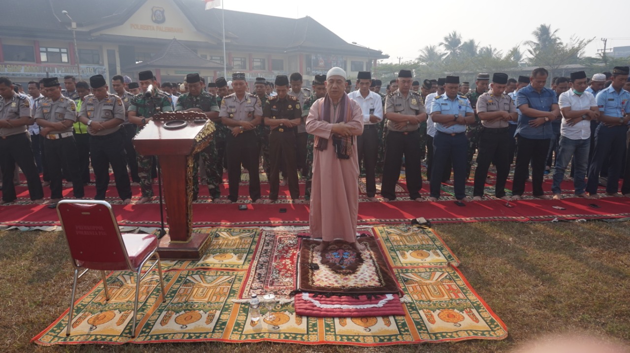 Kemarau panjang dan kabut asap pekat yang menyerang masyarakat beberapa bulan terakhir, berdampak buruk pada kesehatan. Menanggapi hal itu, Polresta Palembang mengelar sholat Istiqo di Halaman Mapolresta Palembang, Rabu (18/9) pukul 07.00 WIB.