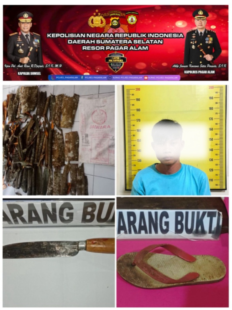 Pagaralam, Halosumsel–Polres Pagar Alam melalui Polsek Pagar Utara ungkap kasus Curas, Aksi nekat seorang petani berinisial Andriansyah (31) asal Desa Penantian, Kecamatan Jarai, Kabupaten Lahat, berakhir di tangan polisi setelah mencoba melukai pemilik kebun yang memergokinya mencuri kulit kayu manis di wilayah Kelurahan Selibar, Kecamatan Pagaralam Utara, Kamis (9/10/2025) pagi.