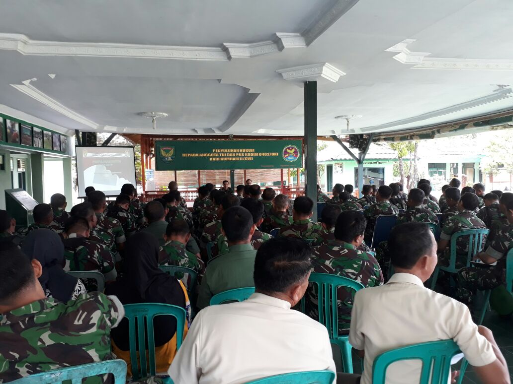 Bertempat di Aula Makodim 0402/OKI, prajurit dan ASN Kodim 0402/OKI menerima penyuluhan hukum dari tim penyuluh hukum Kumdam II/Sriwijaya oleh Mayor Chk Rusmanto, S.H. dan Lettu Chk Hendri, Jumat (25/8/2017)
