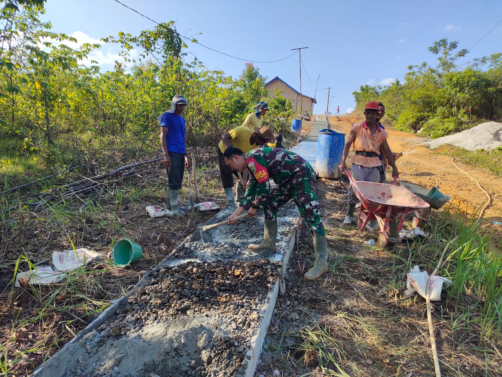 “Semula jalan ini masih berupa tanah, jika musim hujan licin dan becek, maka atas kesepakatan seluruh warga dilaksanakan pengecoran secara gotong royong, agar mempermudah akses jalan bagi masyarakat dalam melaksanakan aktifitas sehari-hari dan dalam mengangkut hasil panen, ” tutup Serda Suryadi.