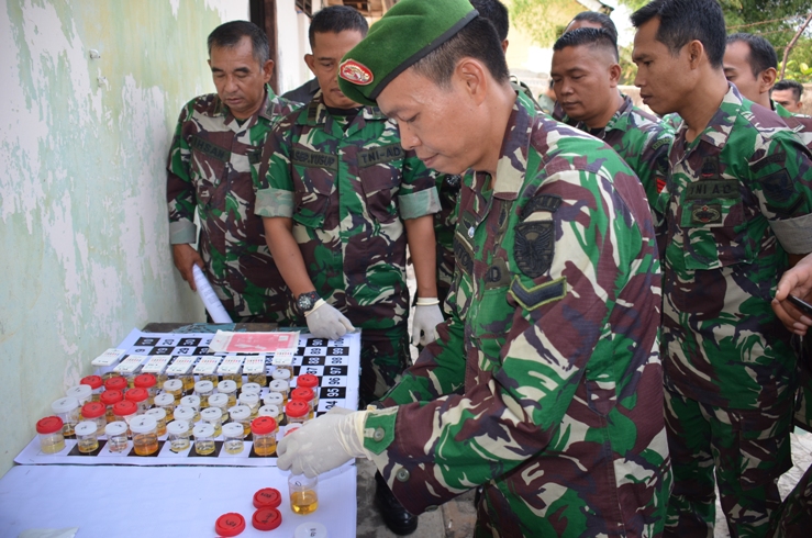 “Sebelum dilakukan pengecekan tes urine, seluruh prajurit Makorem 044/Gapo mengikuti sosialisai P4GN (Pencegahan, Pemberantasan, Penyalahgunaan dan Peredaran Gelap Narkoba), dan sekarang melaksanakan pemeriksaan tes urine bagi prajurit yang mana kami ambil secara sampling” ujar Kasi Intel.