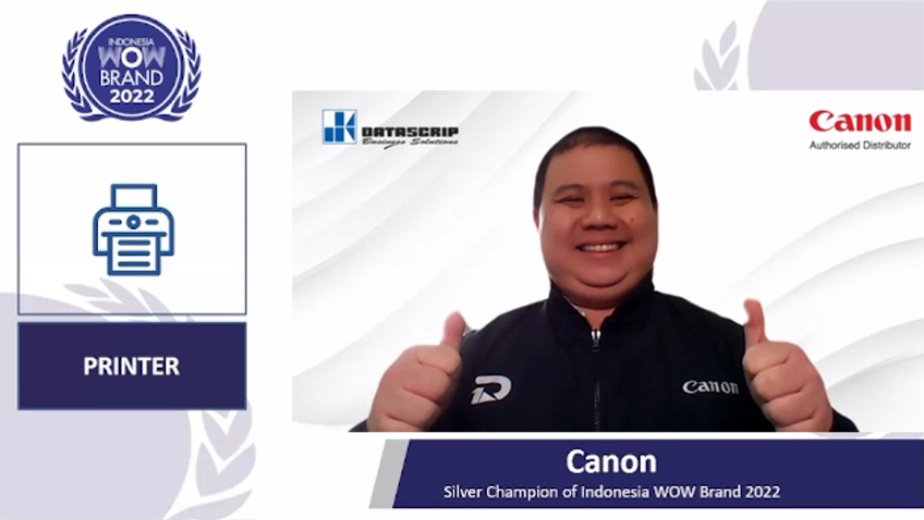 Jakarta,Halosumsel– Canon melalui PT Datascrip sebagai authorised distributor-nya di Indonesia berhasil meraih penghargaan Indonesia WOW Brand 2022 untuk kategori printer sebagai salah satu merek terbaik di Indonesia, pada acara WOW Brand Festive Day 2022 yang berlangsung secara online, Rabu (23/03). Penghargaan yang diberikan oleh MarkPlus, Inc. ini menyatakan Canon sebagai merek terbaik dan menjadi perangkat printer paling direkomendasikan oleh masyarakat Indonesia.