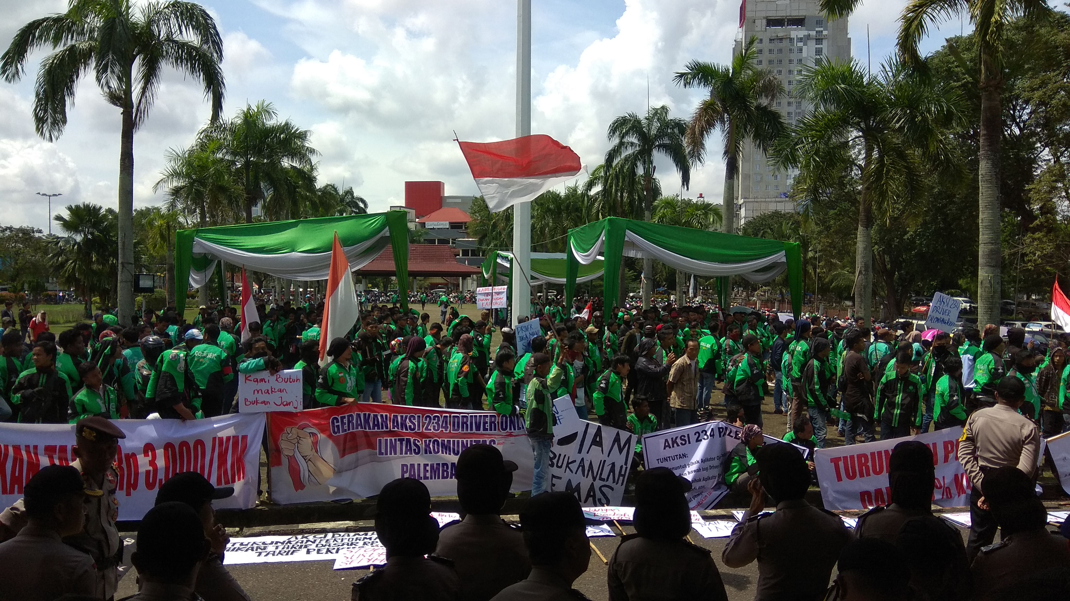 Menganggap sudah tidak sesuai dengan harapan dan keinginan angkutan ojek online,ribuan pengemudi ojek online mendatangi DPRD Sumsel untuk menyampaikan tuntutannya.