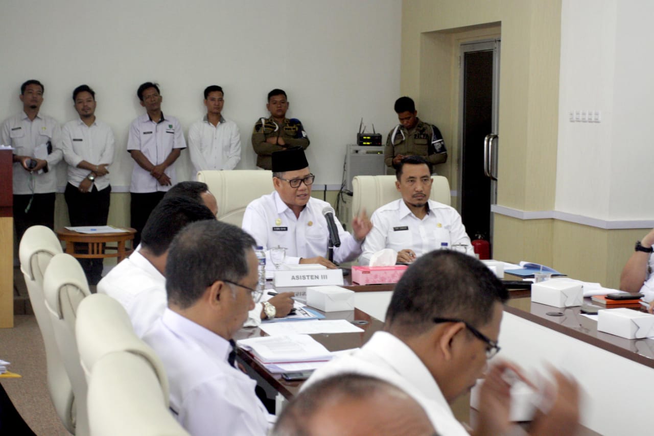 Asisten Bidang Administrasi Umum (III) Pemkab Muba H Ibnu Sa’ad SSos MSi, meminta peran aktif para Kepala UPTD saat memimpin rapat koordinasi di Ruang Rapat Randik, Senin (15/10/2018).