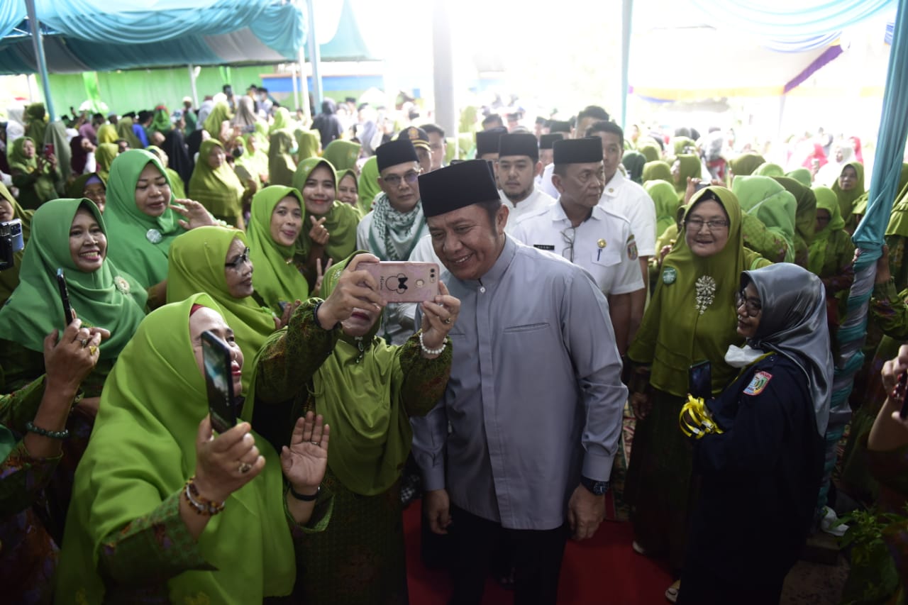 Tidak hanya meresmikan Masjid, di tempat yang sama Herman Deru juga menghadiri Pengajian akbar bersama ratusan pengajian Muslimat Nahdlatul Ulama (NU), sekaligus menyerahkan bantuan seragam bagi 2170 anggota Muslimat NU se-Kecamatan Betung. “Sesibuk apapun saya, saya itu sehari kadang ada 17 acara, paling sering satu hari itu 14 acara, saya ini bisa kuat karena doa ibu saya dan ibu-ibu yang ada disini, Saya hadir disini karena saya hormat dengn ibu-ibu sekalian,” ungkapnya.