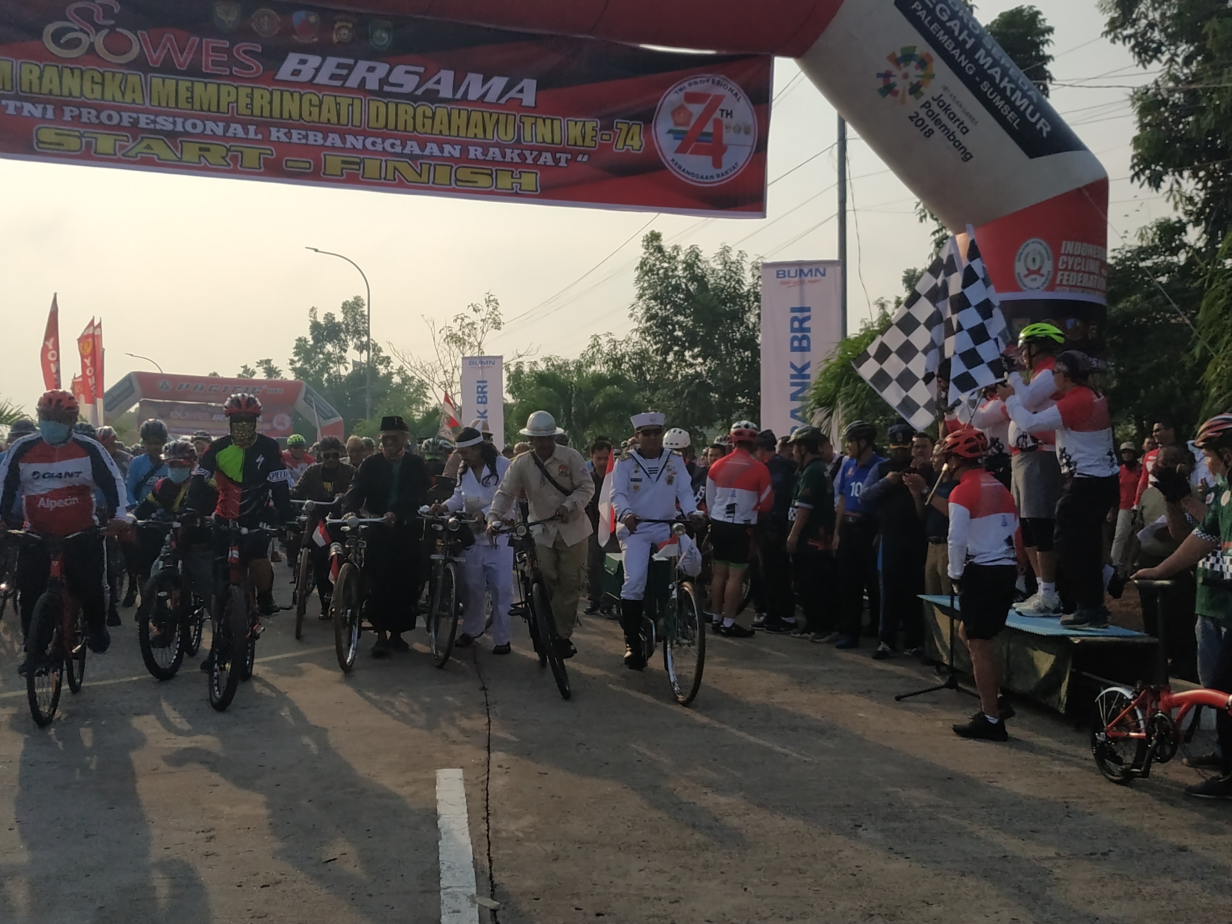 Ribuan peserta gowes ini berasal dari berbagai kalangan seperti masyarakat umum, komunitas komunitas sepeda yang di Sumsel dan para prajurit TNI- Polri, ” Ungkap Pangdam II Sriwijaya Mayjen TNI Irwan saat melepas peserta Gowes