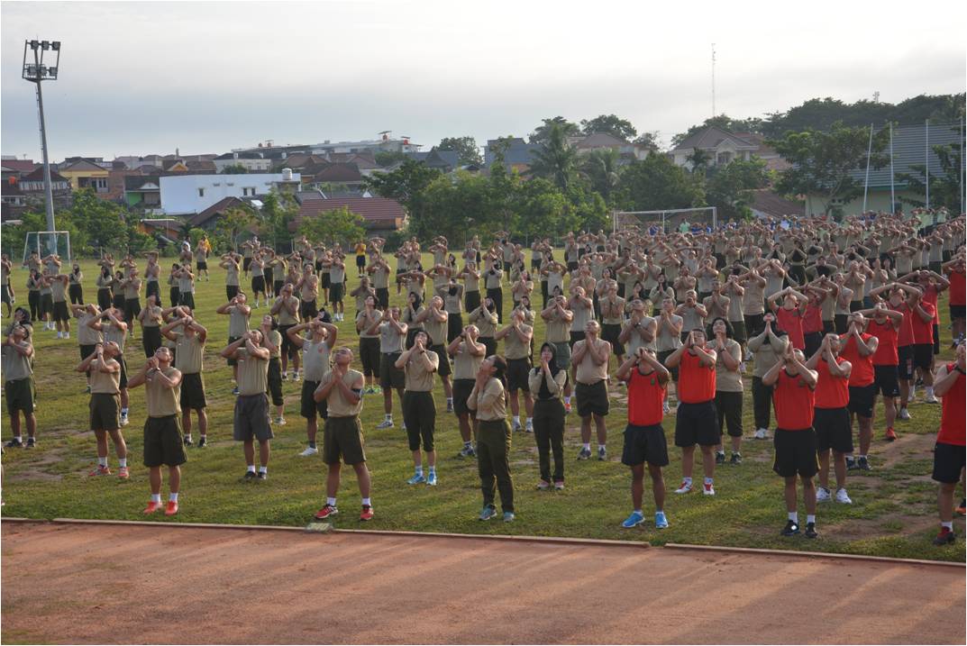 Kegiatan olah raga bersama yang rutin dilaksanakan setiap hari Selasa dan Jum,at tersebut di awali dengan kegiatan apel pagi pengecekan jam 06.30 tepat, kemudian dilanjutkan dengan senam pemanasan, senam kerja, senam pernafasan (senam tera) dan lari bersama selama 30 menit.