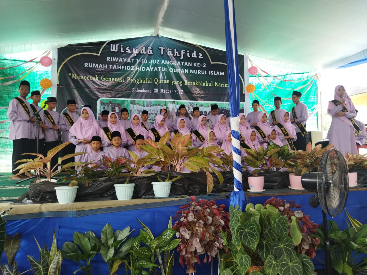 Palembang, Halosumsel- Rumah Tahfidz Hidayatul Qur’an Masjid Nurul Islam pimpinan Ustadz Muhammad Yahya Al Hafidz Mewisuda 80 santriwan dan santriwati Siswa terdiri dari 50 Laki laki dan 30 perempuanMinggu 30 Oktober 2022 di Masjid Nurul Islam Jalan Pertahanan Kelurahan 16 Ulu Kecamatan Seberang 2 Palembang