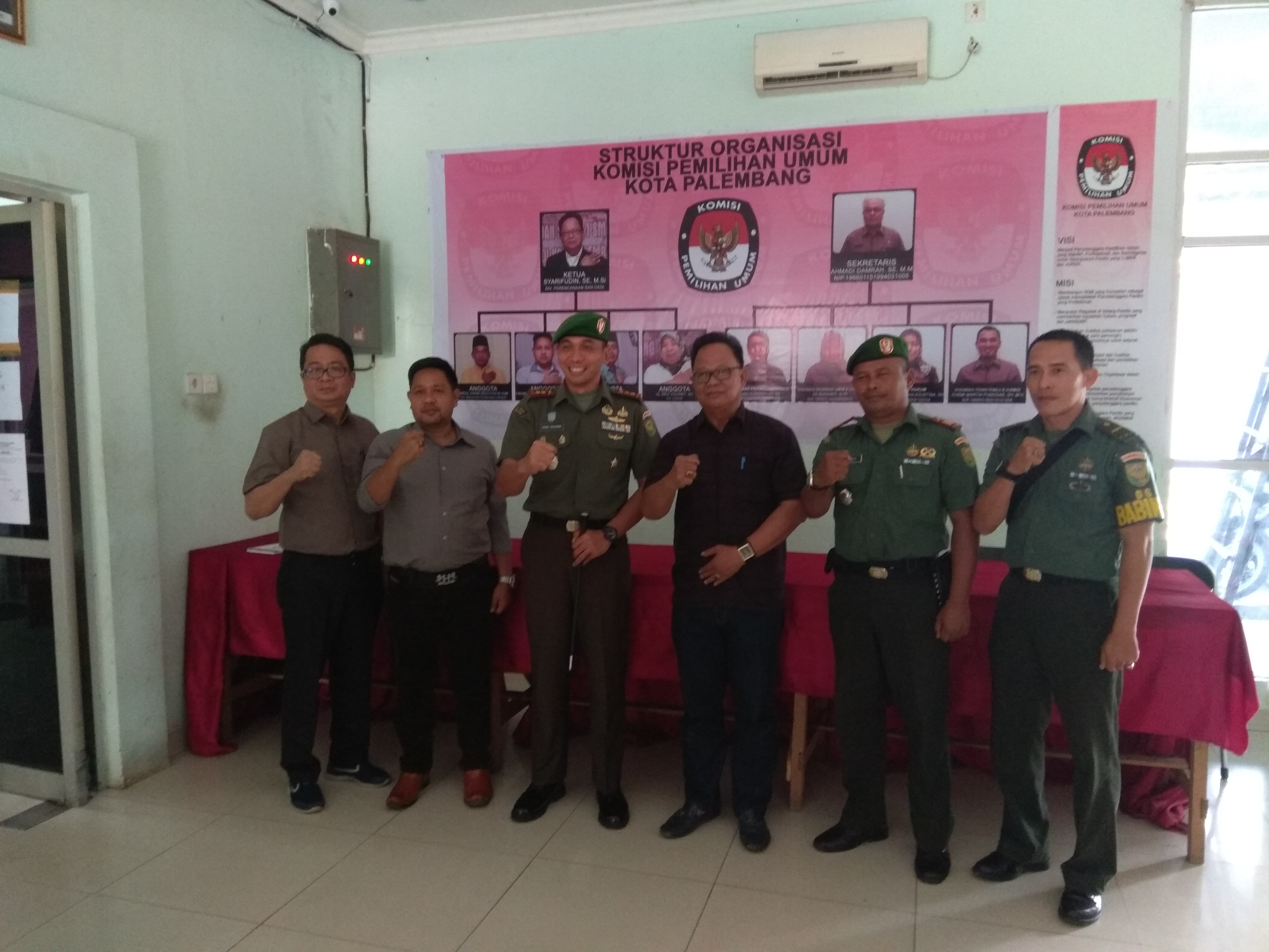 Untuk memastikan proses pelaksanaan pilkada serentak dan Asian Games 2018 berjalan aman dan lancar Komadan Kodim/ Palembang Letkol Inf Honi Havana menggelar safar Merah Putih dengan mengunjungi sekretariat KPU Kota Palembang Rabu (18/4) Palembang