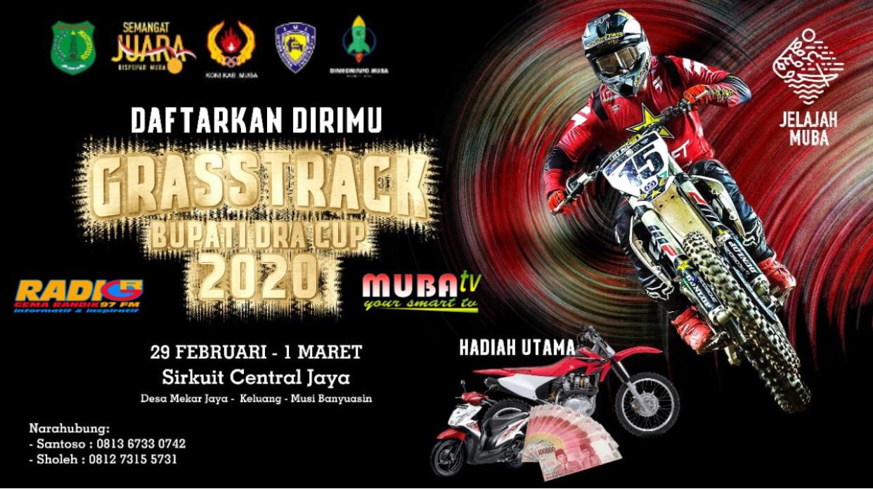 Pacuan kuda besi di venue tanah ini bakal digelar di Sirkuit Non Permanen, Desa Mekar Jaya (A3), Kecamatan Keluang, Muba, 29 Februari – 1 Maret 2020 mendatang untuk itu segera mendaftarkan bagi peserta yang ingin ikut ke Panpel Grassa Track DRA Cup 2020