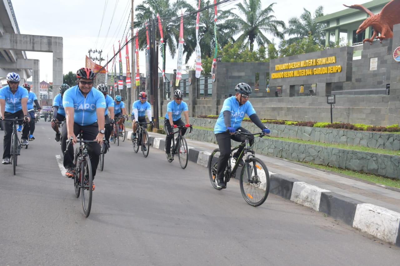 Pangdam ll/Sriwijaya Mayjen TNI Hilman Hadi, S.I.P., M.B.A., M.Han., melakukan kegiatan gowes sepeda bersama Kasdam, Irdam, Kapoksahli, para Asisten Kodam II/Swj dan Dan/Kabalakdam II/Swj, sekaligus mengunjungi Markas Korem 044/Gapo. Kegiatan tersebut dalam rangka silaturahmi dan tatap muka serta pemberian arahan kepada Prajurit dan PNS Satuan Jajaran Korem 044/Gapo,Palembang, pada Kamis (27/10/2022).