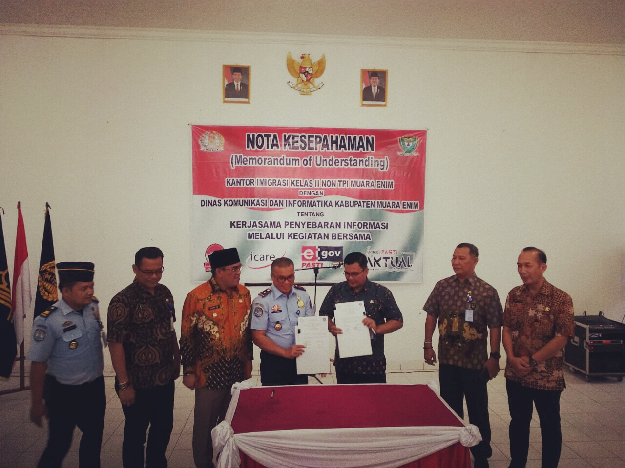 Perjanjian memorandum of understanding MoU diantara kedua berlangsung di kantor imigrasi disaksikan oleh Bupati Muara Enim H Ahmad Yani.