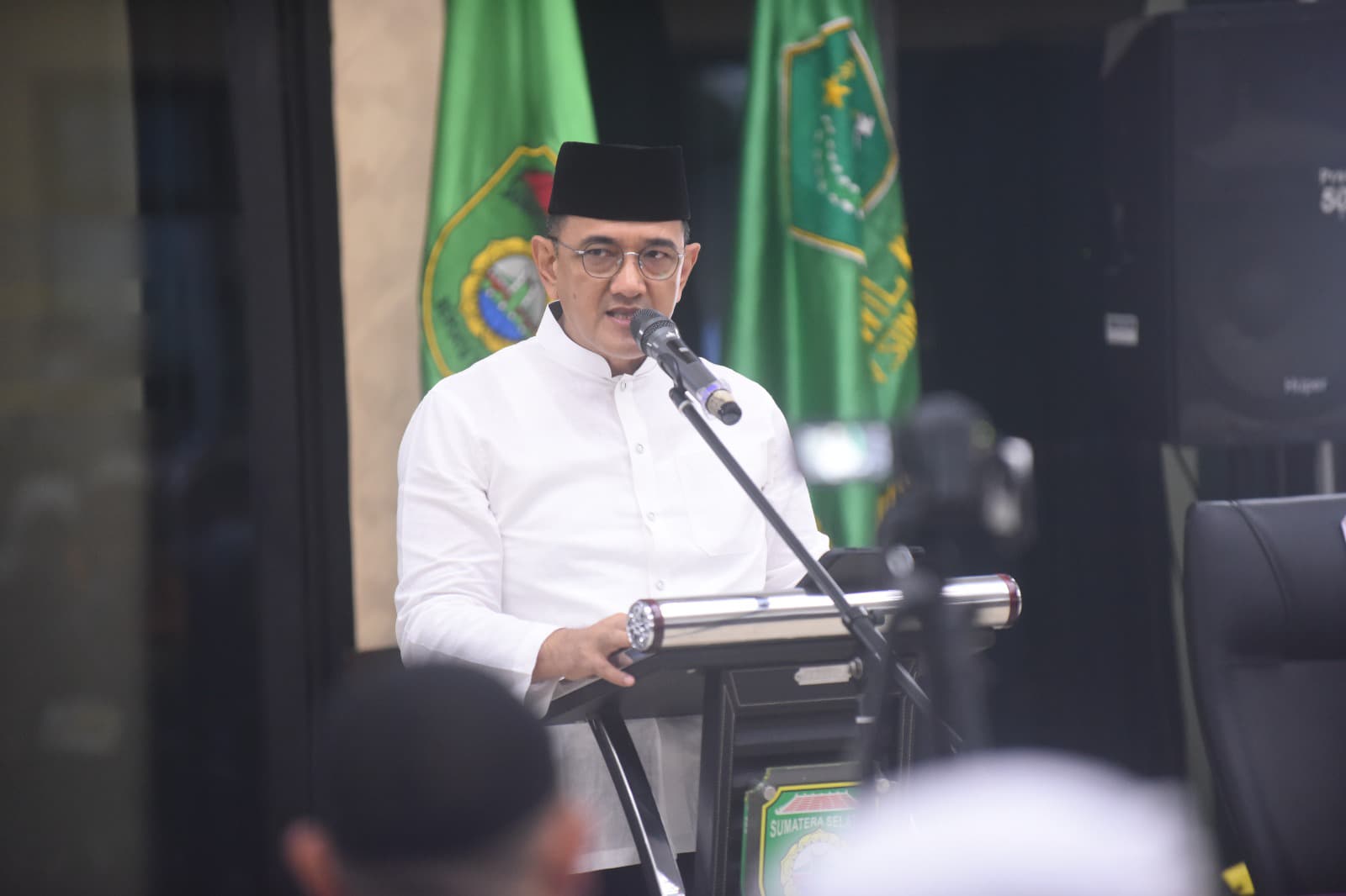 Penyambutan ini mewakili kehadiran Gubernur Sumsel H Herman Deru dalam menandai dimulainya fase pemulangan jemaah haji Embarkasi Palembang.