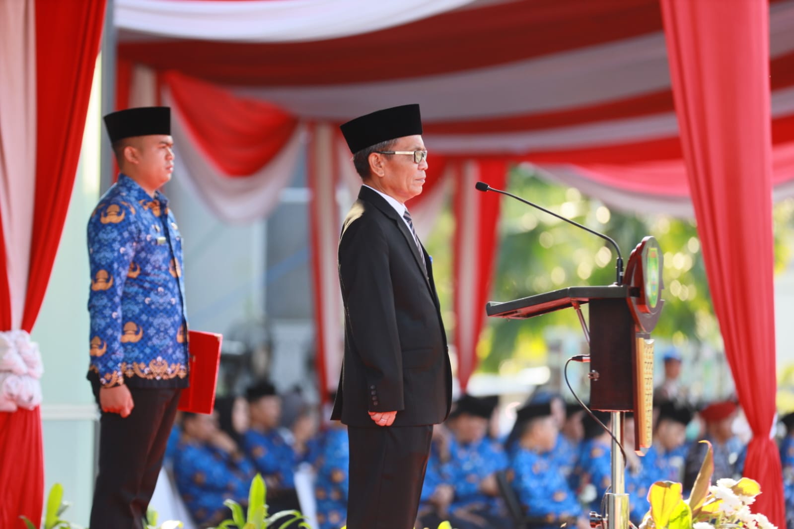 PALEMBANG, Halosumsel – Sekretaris Daerah (Sekda) Provinsi Sumsel Ir. S.A. Supriono bertindak sebagai Inspektur Upacara (Irup) memperingati Hari Kebangkitan Nasional (Harkitnas) ke-115 Tahun 2023 di halaman Kantor Gubernur, Senin (22/5) pagi.
