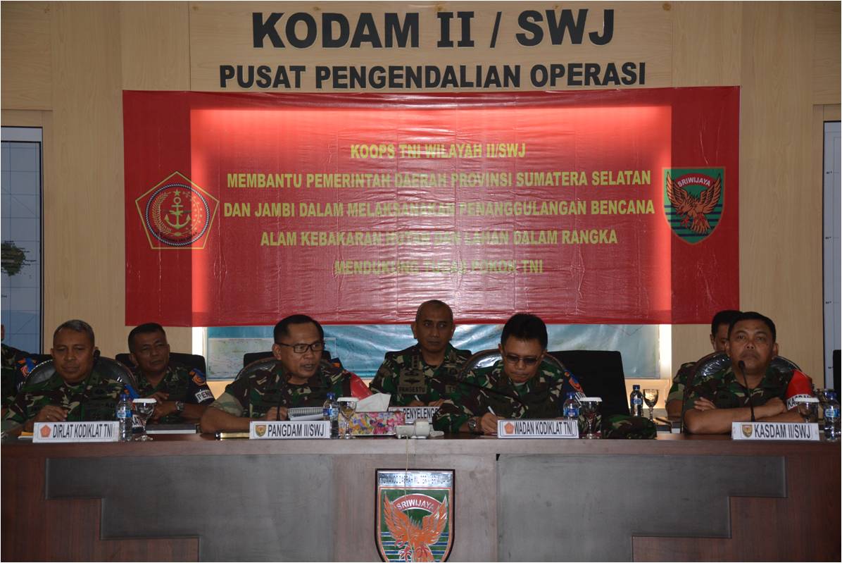 Dalam sambutannya Pangdam II/Swj mengatakan bahwa hampir setiap tahun wilayah Kodam II/swj, saat musim kemarau, muncul titik api atau hot spot yang mengakibatkan terjadinya Karhutla. Terutama Provinsi Sumatera Selatan dan Jambi sebagian merupakan lahan gambut yang rawan terhadap terjadinya Karhutla, baik akibat faktor alam maupun ulah manusia yang tidak bertanggung jawab yang membuka lahan dengan cara membakar.