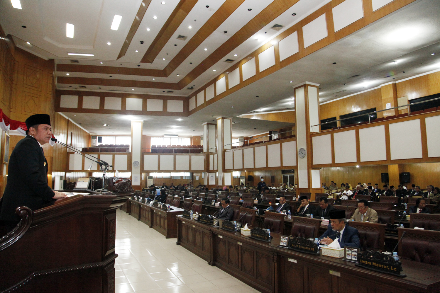 Gubernur Sumsel Herman Deru menyampaikan Tanggapan dan/atau jawaban terhadap Pemandangan Umum Fraksi-Fraksi DPRD Provinsi Sumsel terhadap APBD Provinsi Sumsel Tahun Anggaran 2019 pada Rapat Paripurna LI (51). Rapat ini dibuka langsung oleh Plt. Ketua DPRD Provinsi Sumsel M. Yansuri di Ruang Rapat Paripurna DPRD Sumsel, Senin (19/11).