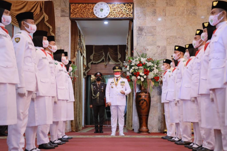 PALEMBANG, Halosumsel – Meski masih dalam suasana pandemi Covid 19, peringatan hari kemerdekaan Republik Indonesia (RI) ke-76 tahun 2021 di lingkungan Pemprov Sumsel berlangsung khidmat dan lancar. Dengan menerapkan protokol kesehatan (prokes) ketat peringatan detik-detik proklamasi yang dipusatkan di Griya Agung Palembang, Selasa (17/8) dipimpin Gubernur Sumsel H. Herman Deru sebagai Inspektur Upacara.