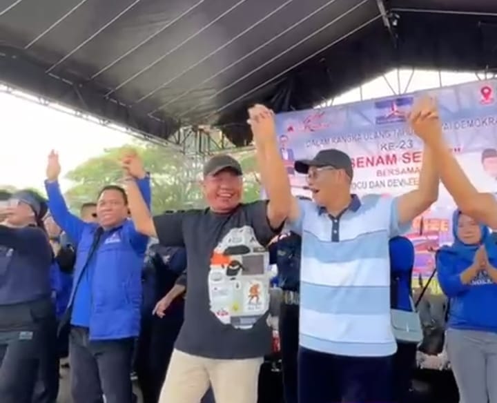 PALI, Halosumsel– Jalan Sehat dan Senam Akbar Dalam Rangka HUT Partai Demokrat yang Ke-23 bersama Herman Deru dan Cik Ujang (HD-CU) di Kabupaten Pematang Abab Lematang Ilir (PALI) diikuti oleh Ribuan warga masyarakat Pali.