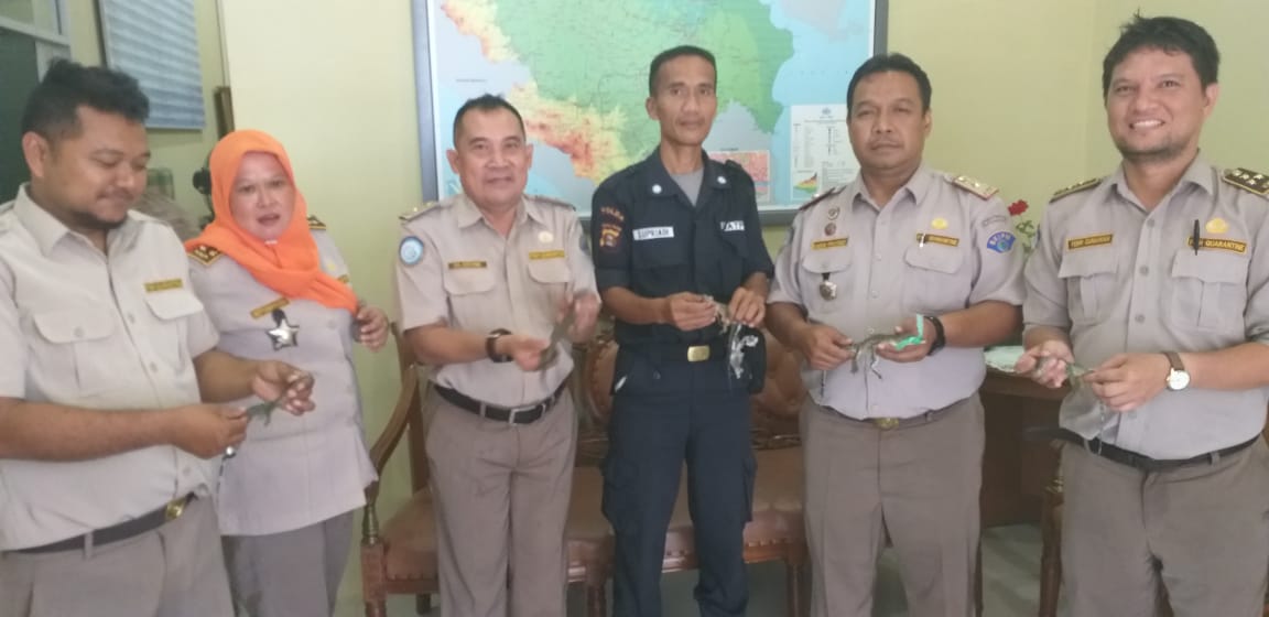 Kamis (6/9) Petugas Karantina Ikan Palembang bersama Avsec Bandara Sultan Mahmud Badaruddin II Palembang kembali melakukan penyelamatan sumber daya ikan dengan melakukan pengagalan upaya penyelundupan komoditi perikanan secara ilegal. Kali ini upaya pengiriman anakan Buaya Muara sebanyak 1 (satu) ekor dari Palembang dengan tujuan Jogjakarta dan 4 (empat) ekor Anakan Biawak dari Palembang tujuan Medan di gagalkan.