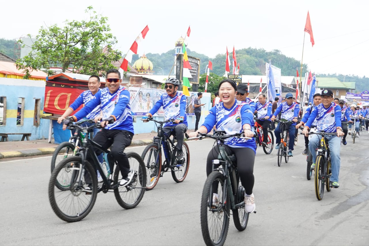 OKU SELATAN, Halosumsel- Event Tahunan  Sriwijaya Ranau Gran Fondo (SRGF)  2023  kembali digelar di pelataran Danau Ranau Kecamatan Banding Agung Kabupaten Ogan Komering Ulu (OKU) Selatan  ditandai dengan pengibaran bendera start oleh Gubernur Sumatera Selatan (Sumsel) H Herman Deru sekitar pukul 07.00 Wib, Sabtu (19/8) pagi.