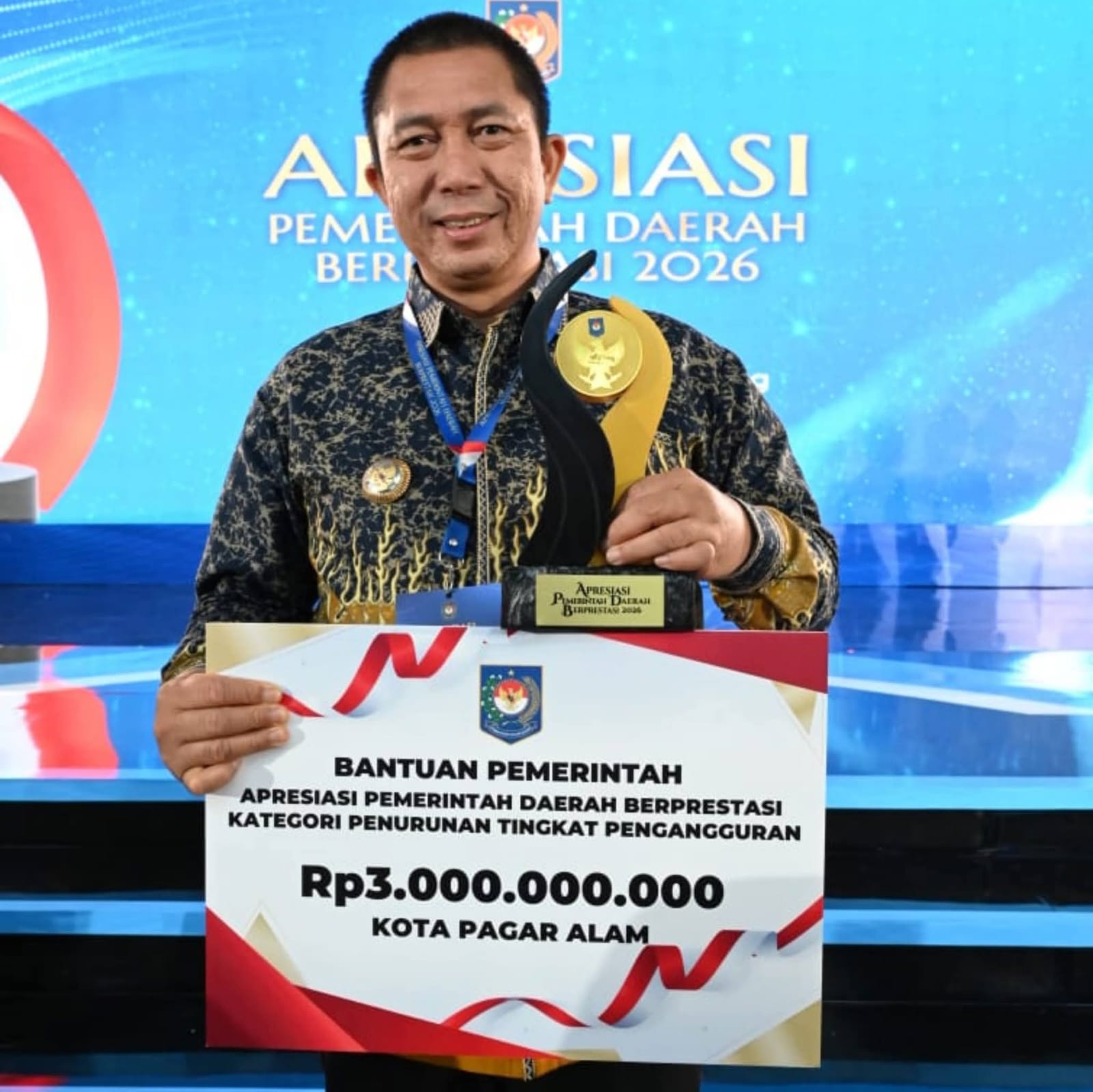 Apresiasi tersebut diserahkan oleh Sekjen Kemendagri Tomsi Tohir, kepada Wali Kota Pagar Alam Ludi Oliansyah, dalam acara Apresiasi Pemerintah Daerah Berprestasi 2026, yang berlangsung di Hotel Wyndham Palembang, pada Sabtu (25/04/2026).
