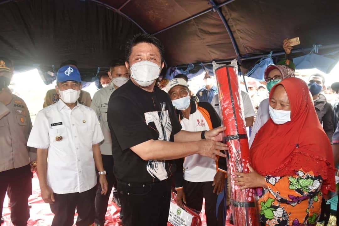 “Saya datang membawa bantuan sejumlah bantuan sembako, obat-obatan, masker. Untuk merenkonturksi atau membangun kembali rumah yang rusak saya akan memberikan stimulan Rp 5 juta persatu rumah,” imbuh Herman Deru.