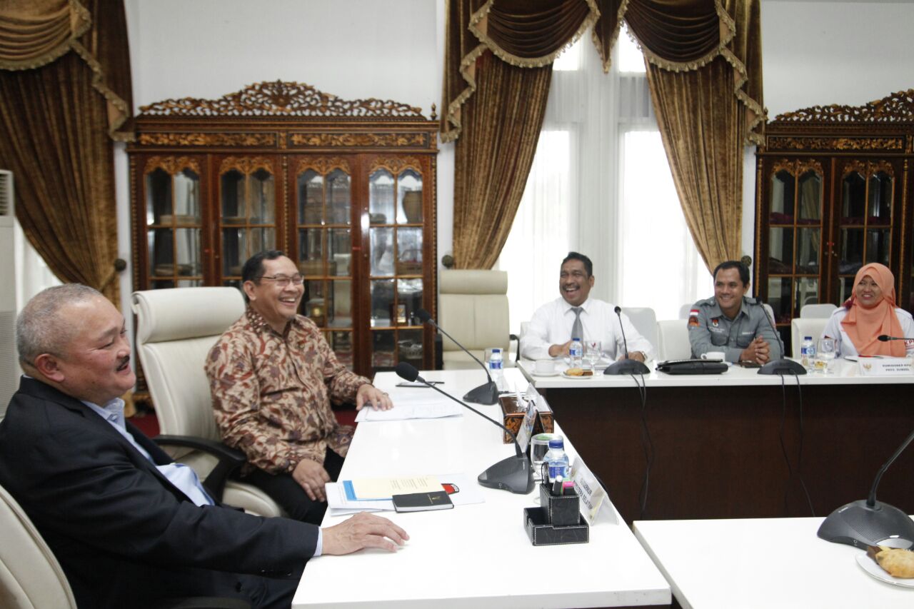 Gubernur Sumsel Alex Noerdin menerima Ketua dan Komisioner Komisi Pemilihan Umum Provinsi Sumsel dalam rangka melaporkan Progres pelaksanaan Tahapan Pemilihan Gubernur dan Wakil Gubernur Sumsel Tahun 2018, di Griya Agung, Selasa (3/4).