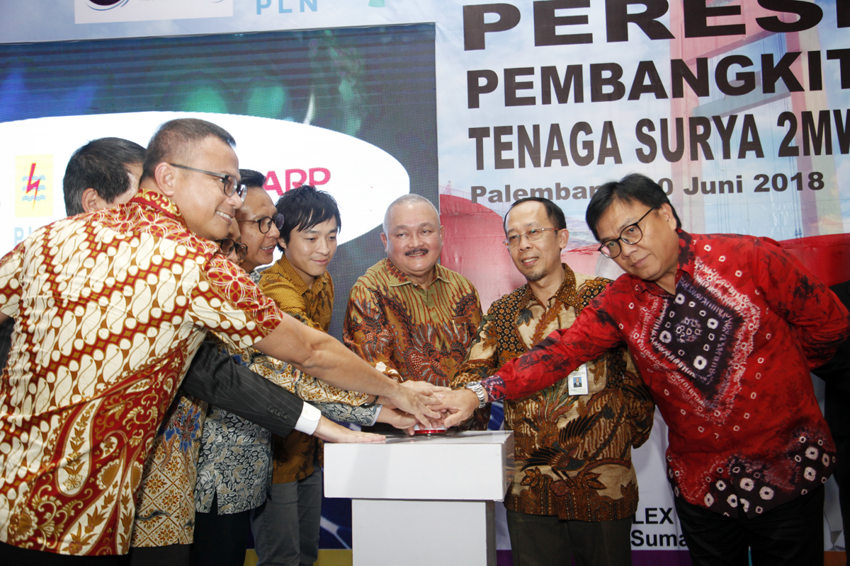 Pembangkit listrik tenaga surya (PLTS) berkapasitas dua megawatt (MW), yang berlokasi di kawasan Jakabaring Sport City resmi beroperasi Sabtu (30/6). Hal tersebut ditandai dengan penekanan tombol sirine oleh Gubernur Alex Noerdin bersama Direktur Utama PDPDE Sumsel Arief Kadarsyah dan Sharp Corporation Sato Tat Suya.