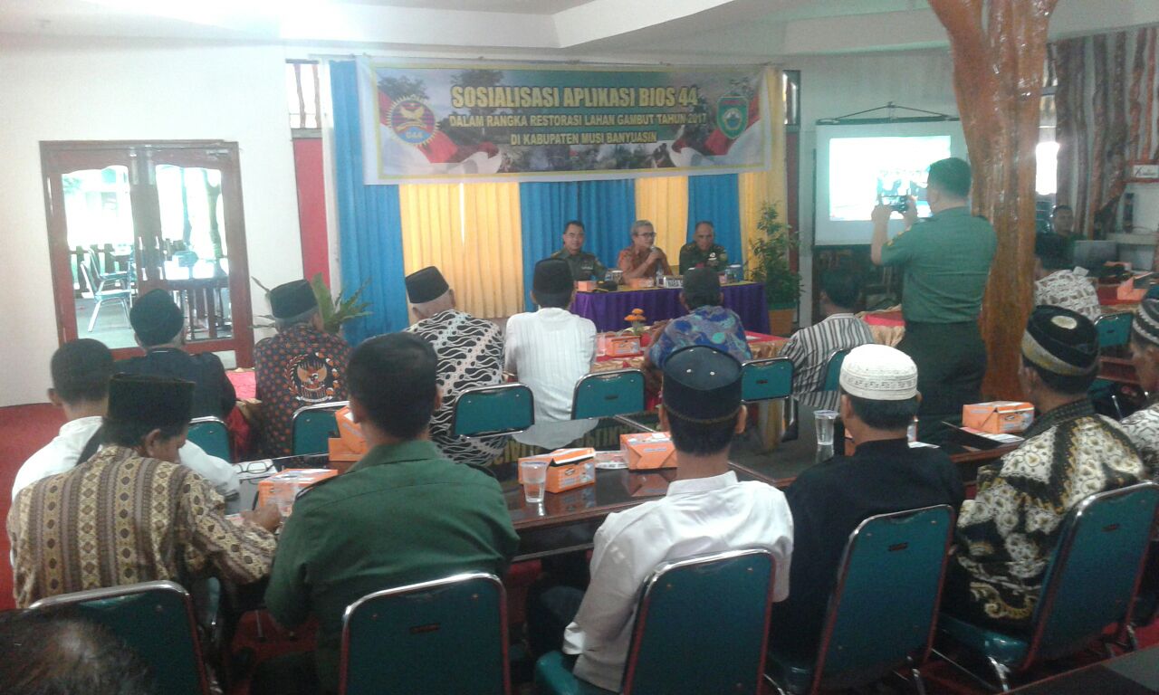 Tim yang terdiri dari personel Korem 044/Gapo yang diwakili oleh Kasiter Korem 044/Gapo Letkol Inf Feridian Prabawa, S.H., M.H. dan Pasi Bhakti Mayor Inf Mujari, personel TRG Pusat Bapak DR. Asmadi Saat dan Kodim 0401/Muba yang diwakili oleh Kasdim 0401/Muba Mayor Inf Surobin melakukan sosialisasi restorasi lahan gambut kepada 30 orang perwakilan masyarakat dari 5 Kecamatan di wilayah Musi Banyuasin yang memiliki lahan gambut.