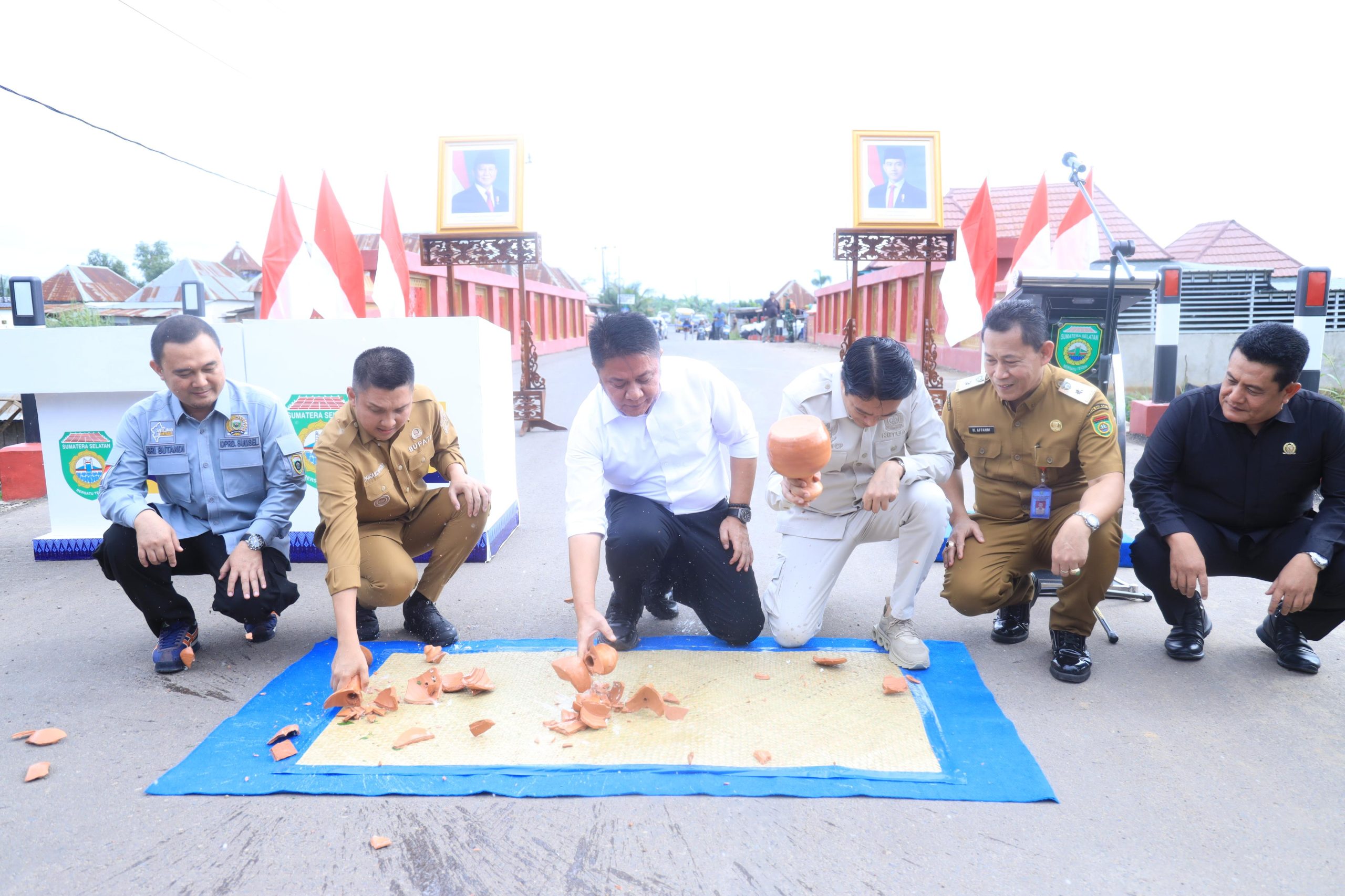 Ogan Ilir, Halosumsel– Gubernur Sumatera Selatan (Sumsel) H.Herman Deru didampingi Bupati Ogan Ilir Panca Wijaya Akbar meresmikan Infrastruktur Jembatan Air Lais, Pemulutan dan Jembatan di Trans SP Tanah Abang ditandai dengan pemecahan kendi dan penandatanaganan prasasti di Desa Babatan Saudagar Kecamatan Pemulutan Kabupaten Ogan Ilir, Selasa (11/3/2025).