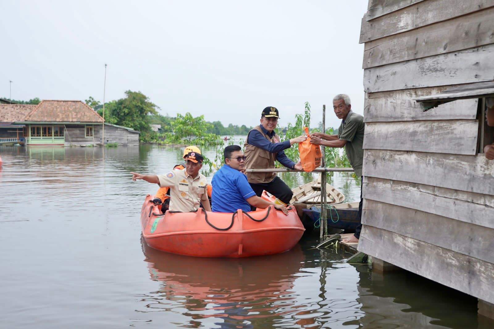 Muba, Halosumsel- Penjabat (Pj) Gubernur Sumatera Selatann (Sumsel) Agus Fatoni meninjau sekaligus memberikan bantuan ke lokasi banjir di Kabupaten Musi Banyuasin (Muba), tepatnya Desa Teluk Kijing 1 dan Tanjung Agung Barat. Fatoni bahkan mengantarkan langsung bantuan tersebut ke rumah warga menggunakan perahu karet.