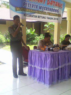 Musrenbangcam tersebut yang diadiri oleh dua orang perwakilan DPRD Banyuasin, Bappeda, PUCK, PUBM, Lurah dan Kades beserta tokoh masyarakat termasuk seluruh Pengurus BPD se kecamatan Betung.