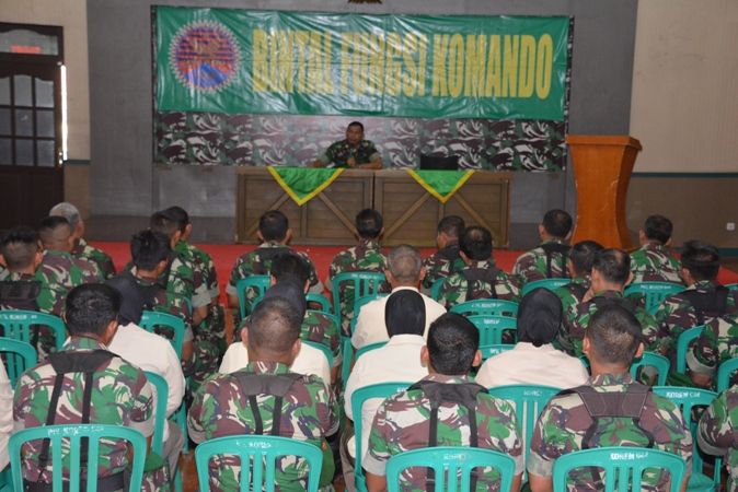 Pelaksanaan ibadah puasa Ramadhan 1439 H sudah mencapai satu minggu atau pada hari kedelapan, Komandan Korem 044/Gapo Kolonel Inf Iman Budiman, S.E. melalui Kepala Seksi Personel (Kasipers) Korem Letkol Inf Prabowo mengumpulkan seluruh anggotanya untuk diberikan pengarahan yang dikemas dalam kegiatan Bintal fungsi Komando bertempat di Balai Prajurit Korem 044/Gapo, Kamis (24/5/2018).
