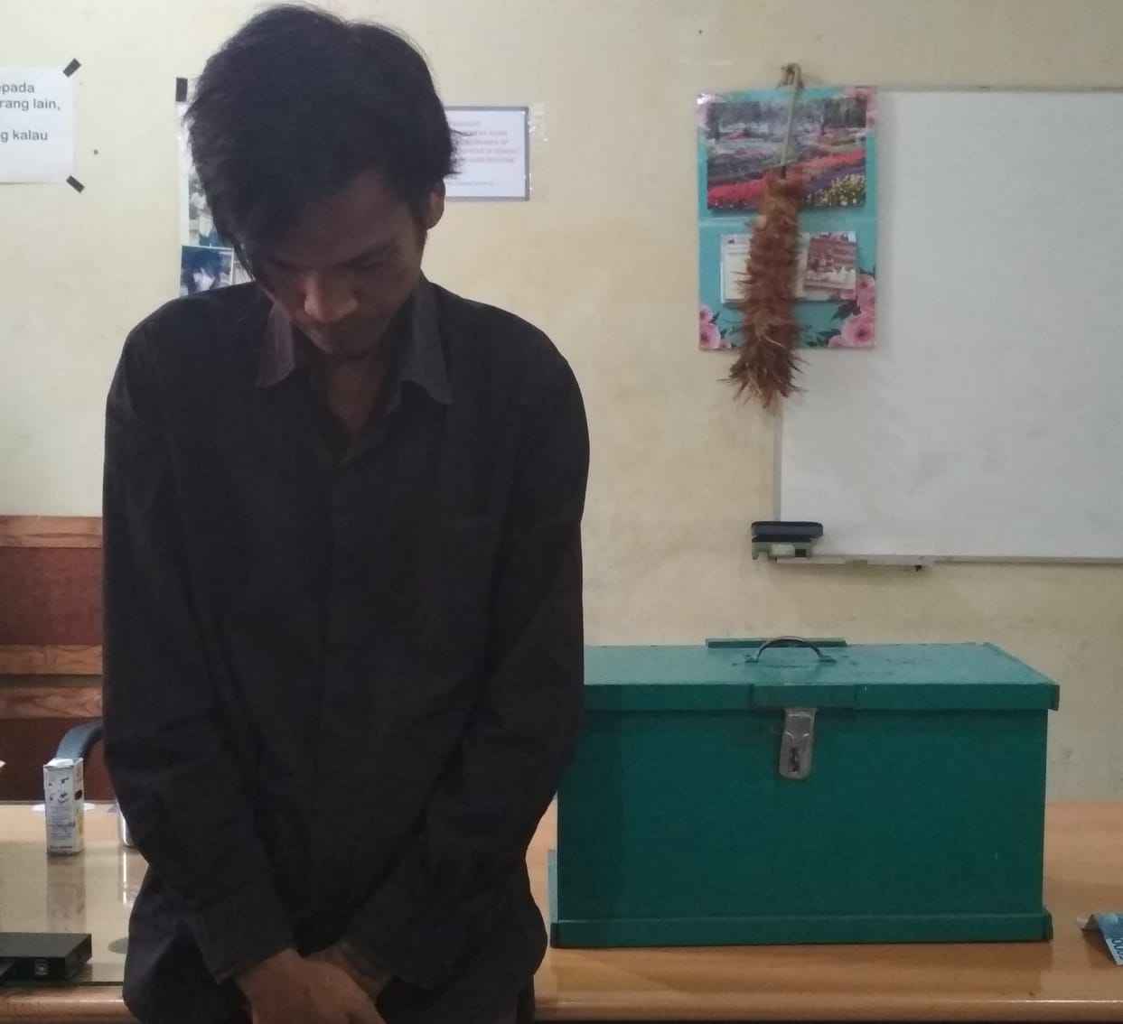 “Awalnya saya sholat duha. Karena kelaparan, terlintaslah ingin mencuri kotak amal masjid itu. Dengan menggunakan patahan antena dan obeng, saya berusaha keras untuk mengambil uang tersebut,” ungkapnya.