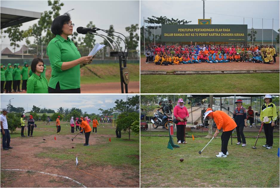 Wakil Ketua Persit Kartika Chandra Kirana (KCK) PD II/Swj, Ny. Vera Komaruddin memimpin upacara Penutupan Pekan Olahraga dan Kesenian antar Persit jajaran Kodam II/Swj dalam rangka Peringatan HUT Ke-70 Persit KCK Tahun 2016, yang berlangsung pada Kamis (24/3/2016) di Lapangan Stadion Garuda Jasdam II/Swj, Tanjung Api-api Km. 9 Palembang.